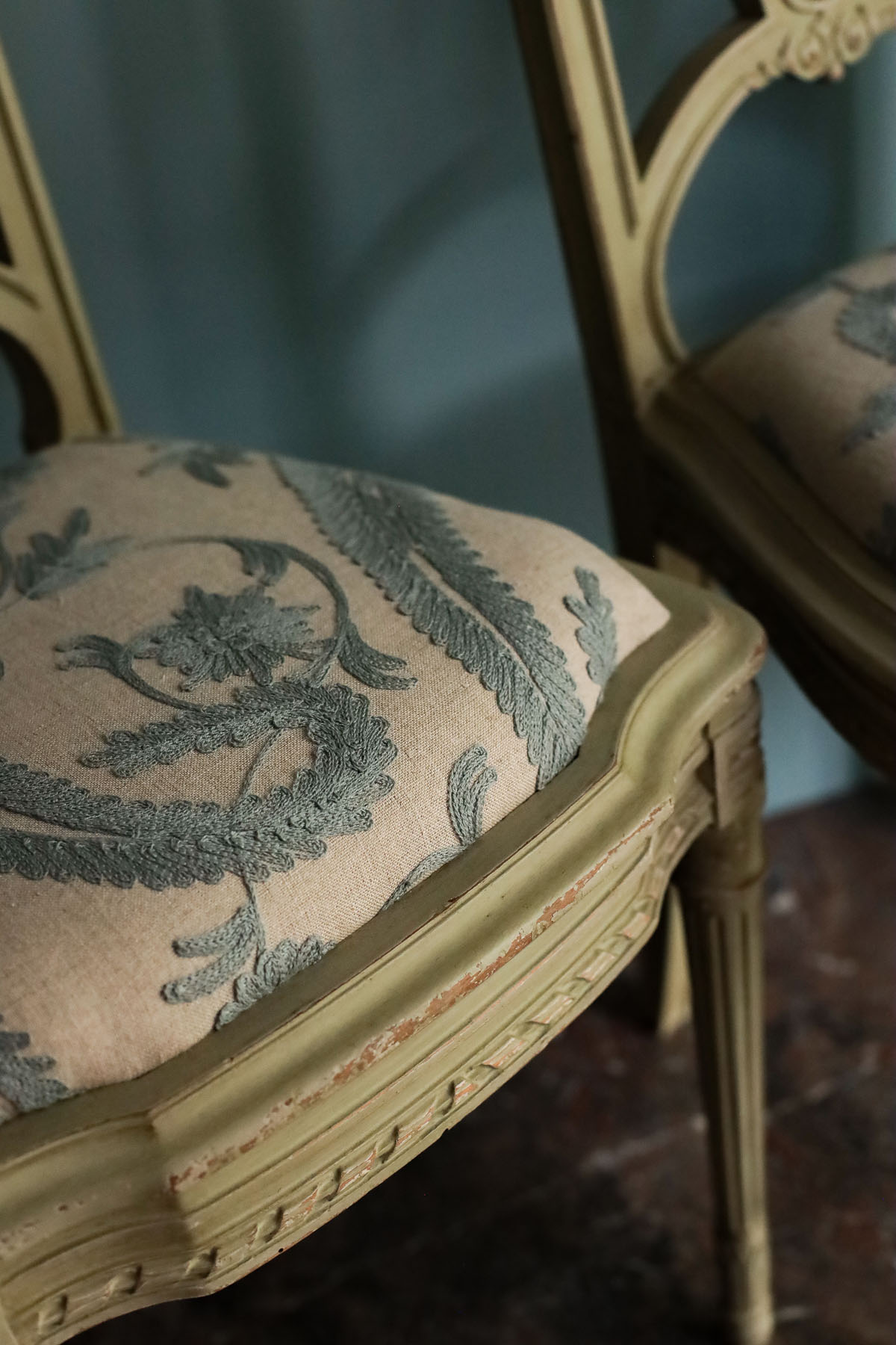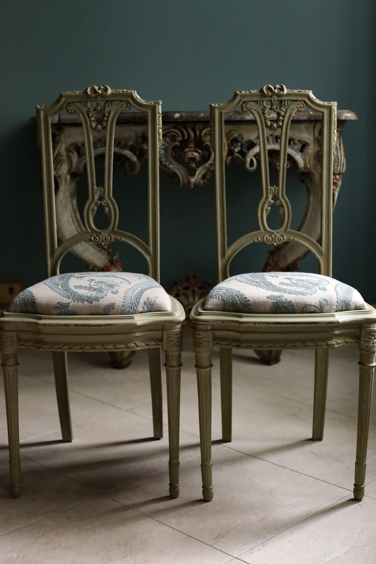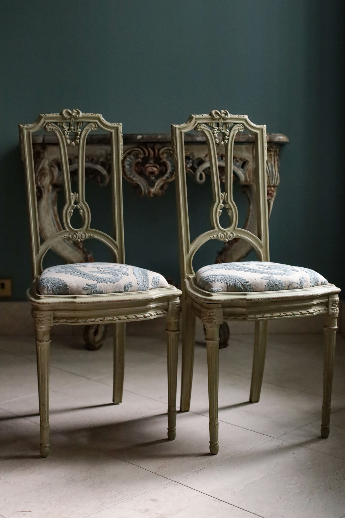 Элегантная пара стульев из крашенного дерева в стиле Людовика XVI.