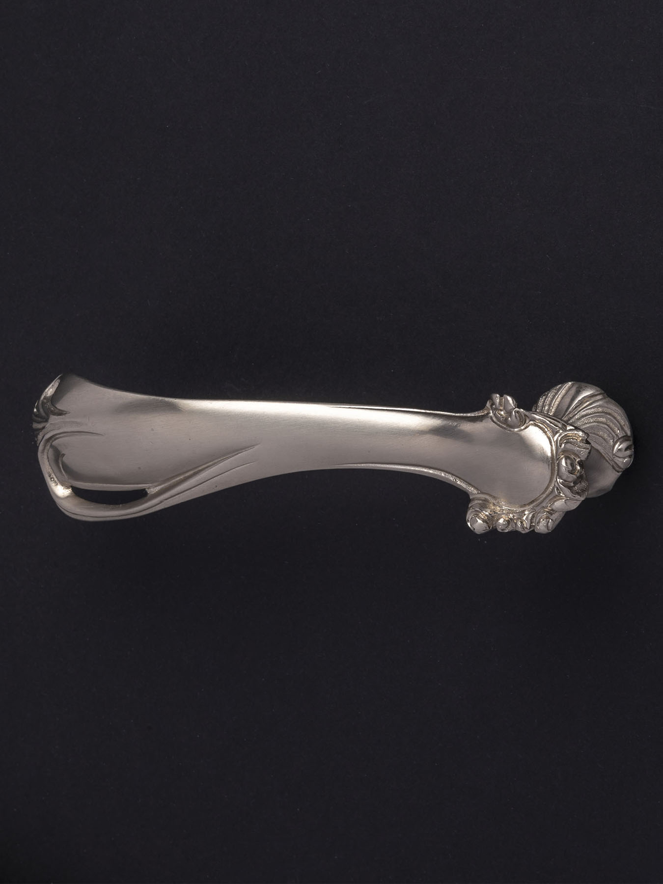 Бронзовая дверная ручка в стиле модерн. Основание ручки украшено резными цветочными мотивами. Ручка следует изгибам этого стиля, используя женственные округлые линии.